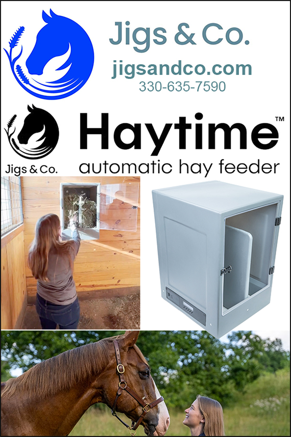 "I highly recommend Jigs & Co’.s Haytime feeder! It is so easy to set up, the customer service is phenomenal, and I have so much peace of mind knowing that my horse will never have to go all day without hay! Haytime is perfect for night feedings while you sleep or when you are away from your horse for an extended time during the day."