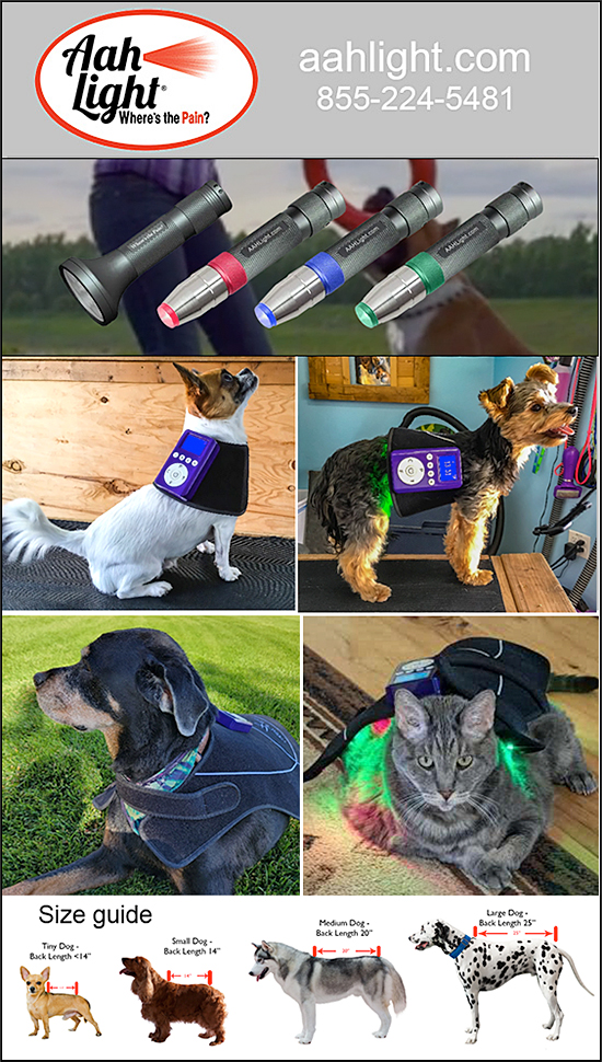 Although AAH stands for “Accelerated Alternative Healing”, the word AAH was chosen mostly because when animals and people use the light, the affects tend to help them sigh a nice big "AAAAAAAAAAAAH" --as relief from pain and discomfort seem to melt away! You'll be saying "AAH" too and so will your horses, dogs and animal friends!