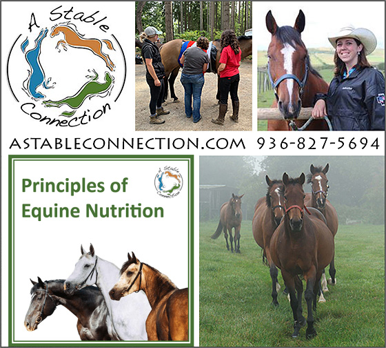 This is a course that every horse owner should want to take! A Stable Connection is now offering a one-day Equine Nutrition class for horse-owners. This class will offer an independent, unbiased overview of the principles of equine nutrition. It is the only independent, in-person equine nutrition class available and instructor training is available to those who would like to teach the class. The total tuition is $1,599 – again most instructors make their investment back with their first couple of classes! $1,599